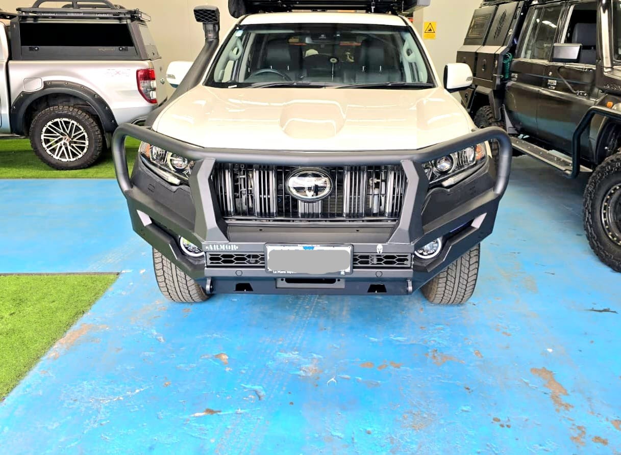 The ARMORMAN Bushmaster Bull Bar for PRADO 150 is a unique solution for your PRADO 150(2018+) SERIES as it comes in full bumper replacement Design.