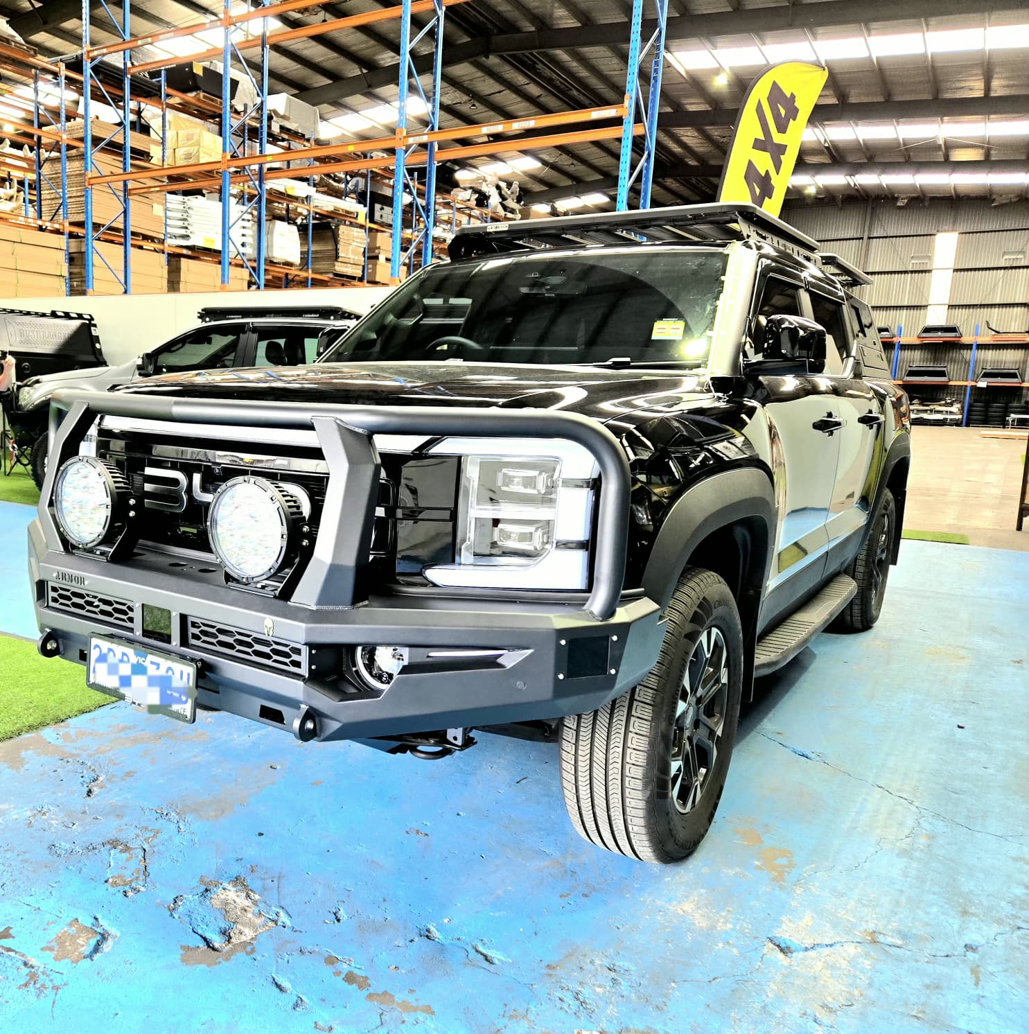 The ARMORMAN Bushmaster Bull Bar for BYD SHARK 6 is a unique solution for your BYD SHARK 6 SERIES as it comes in full bumper replacement Design.