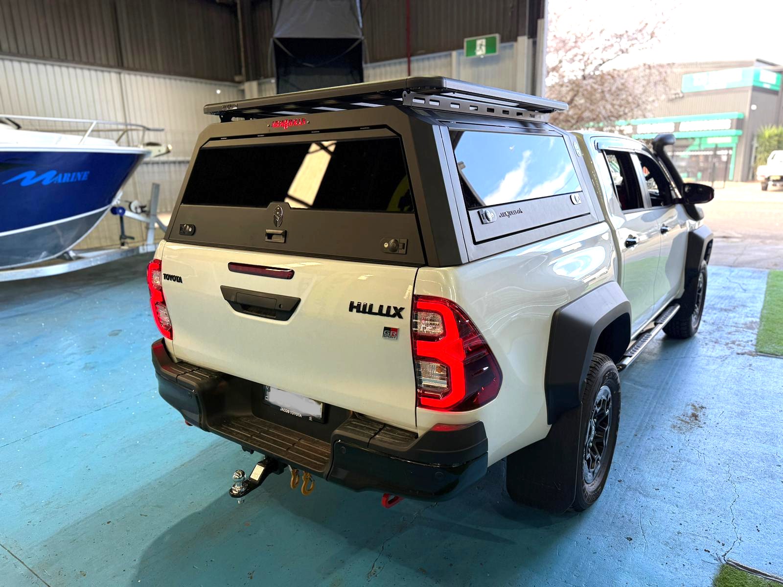 ARMORMAN 4X4 Solid side glass tub Canopy for Hilux– your ultimate companion for your 4WD adventures and everyday utility. Engineered with precision and crafted from