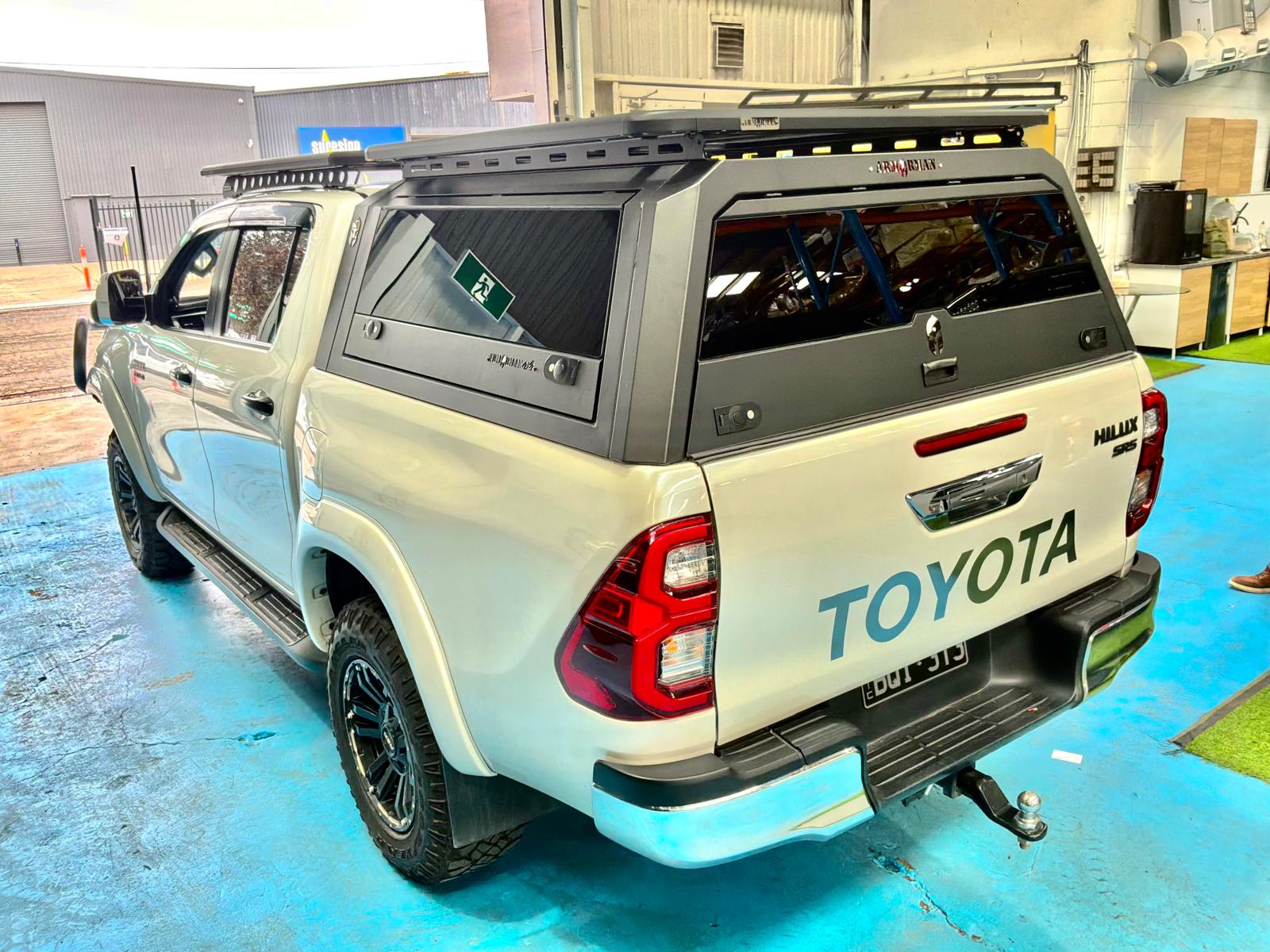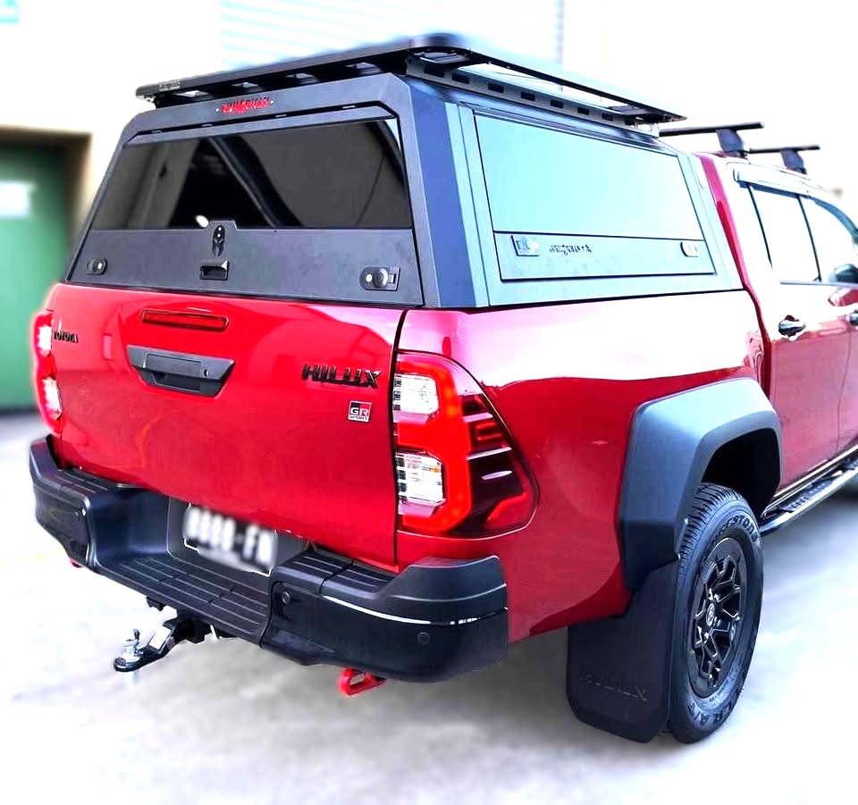 Our Hilux Canopy- Solid side glass UTE Canopy Designed for both durability and style, the Tub canopy features a sleek black powder-coated finish that adds a touch of sophistication to your vehicle. Enjoy enhanced