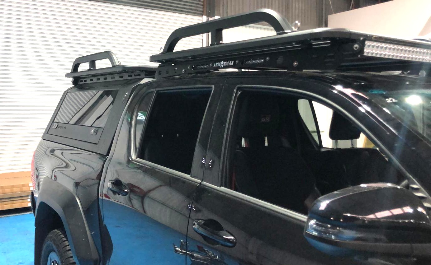 - Includes a pair of black powder-coated aluminium side rails